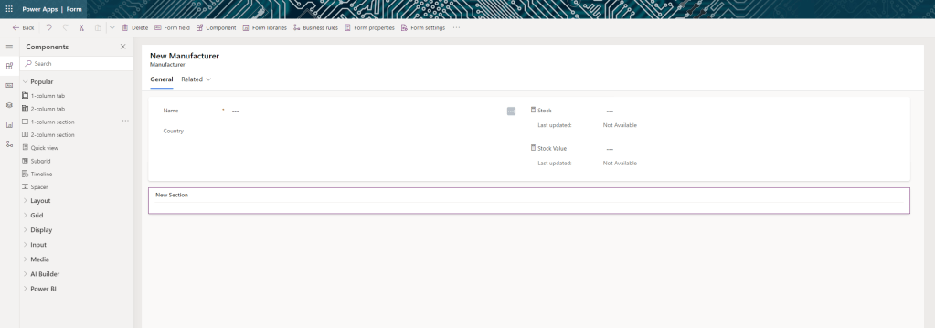We can achieve this with subgrids. From the solution view, select Tables > Manufacturer from the side navigation, and then click on the Main form to load the editor.