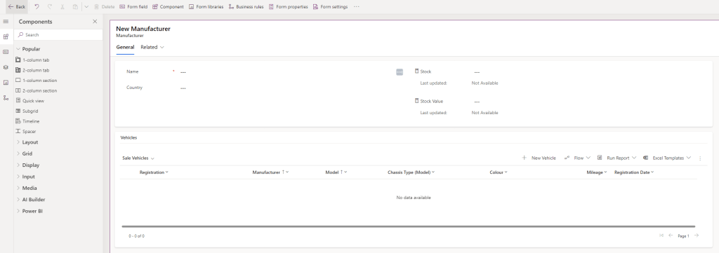 Save our updates and then click Save and publish. This subgrid will only show Sale Vehicles for the selected Model – if the selected Model is a BMW 3 Series, then the grid will only show BMW 3 Series vehicles as opposed to the full dataset or the subset of BMW Vehicles. In essence, a further filter on the existing Manufacturer subgrid.