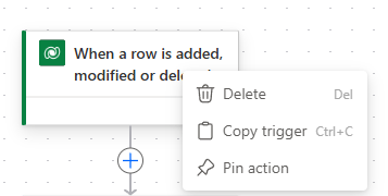 When the flow canvas loads, right click on the When a row is added, modified or deleted Trigger and click on Delete.
