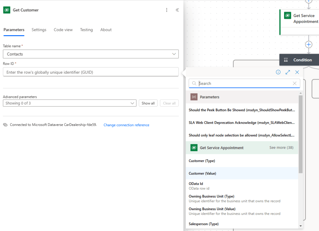 Then we update our Get Customer Action to reference the Customer (Value) from our Get Service Appointment Action.