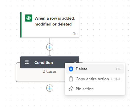 Next, we open up our existing Create Service Appointment flow, right click on the Condition container and select Delete.