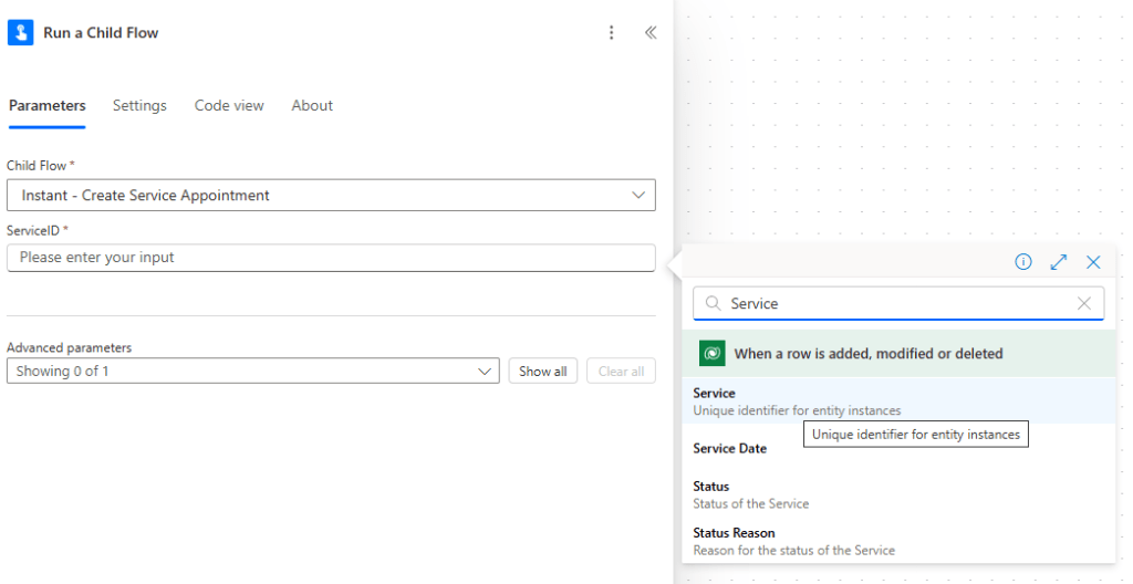 - ServiceID – Service from the When a row is added, modified or deleted Trigger.