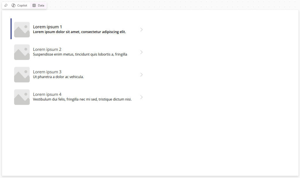 This will update the canvas with a scrollable list, filled with dummy data. Rename the Gallery control as galServices.
