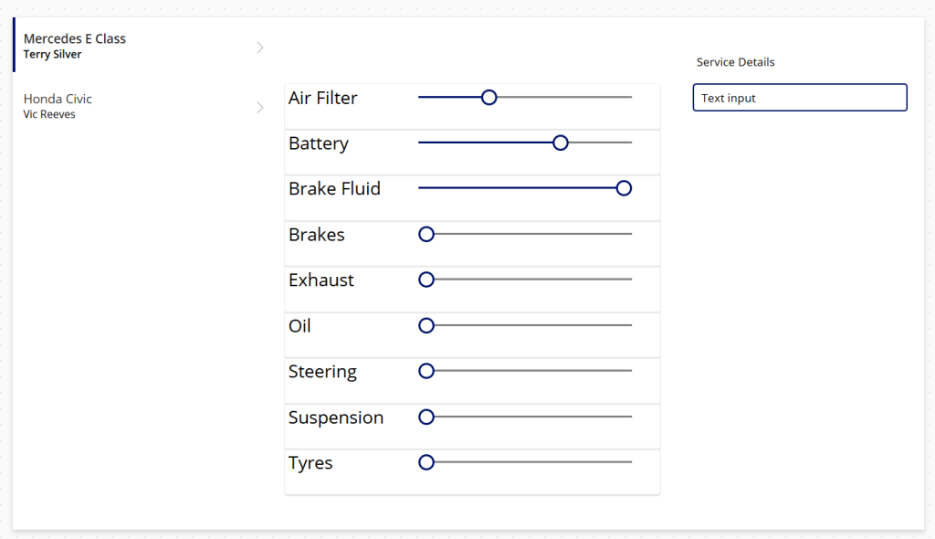 - Text labels – e.g. lblAirFilter, lblBrakes, lblOil