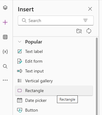 Let’s add the first column to our grid here. Add a Rectangle to the canvas from the components