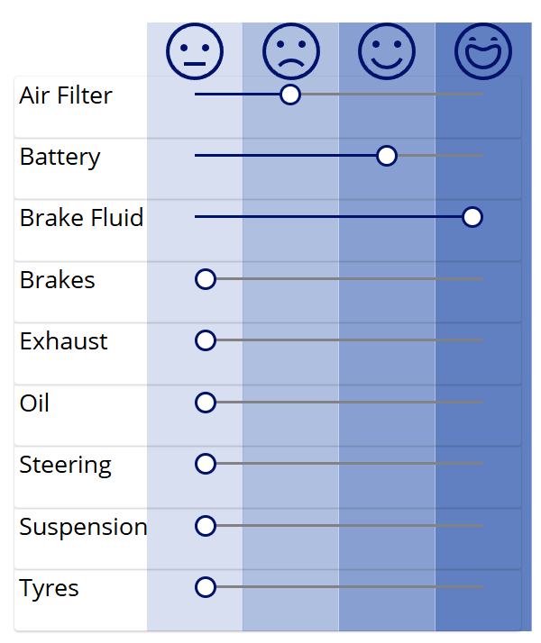 Earlier in the post we set the Toggle controls to hide the toggle value. Instead, we wish to use some sort of visual indicator illustrating where each test result stands on a sliding scale, something like this: