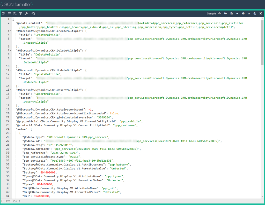 Next, we want to tidy this up a bit. I use https://jsonformatter.org/ to format the output in an easy to read manner, like so: