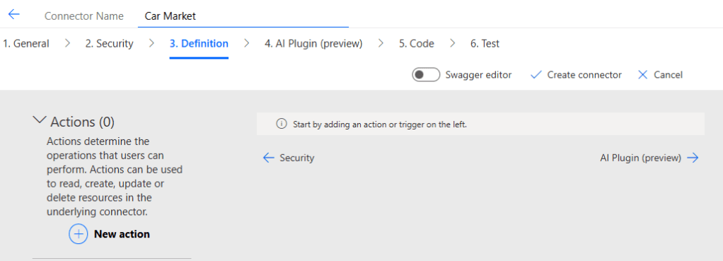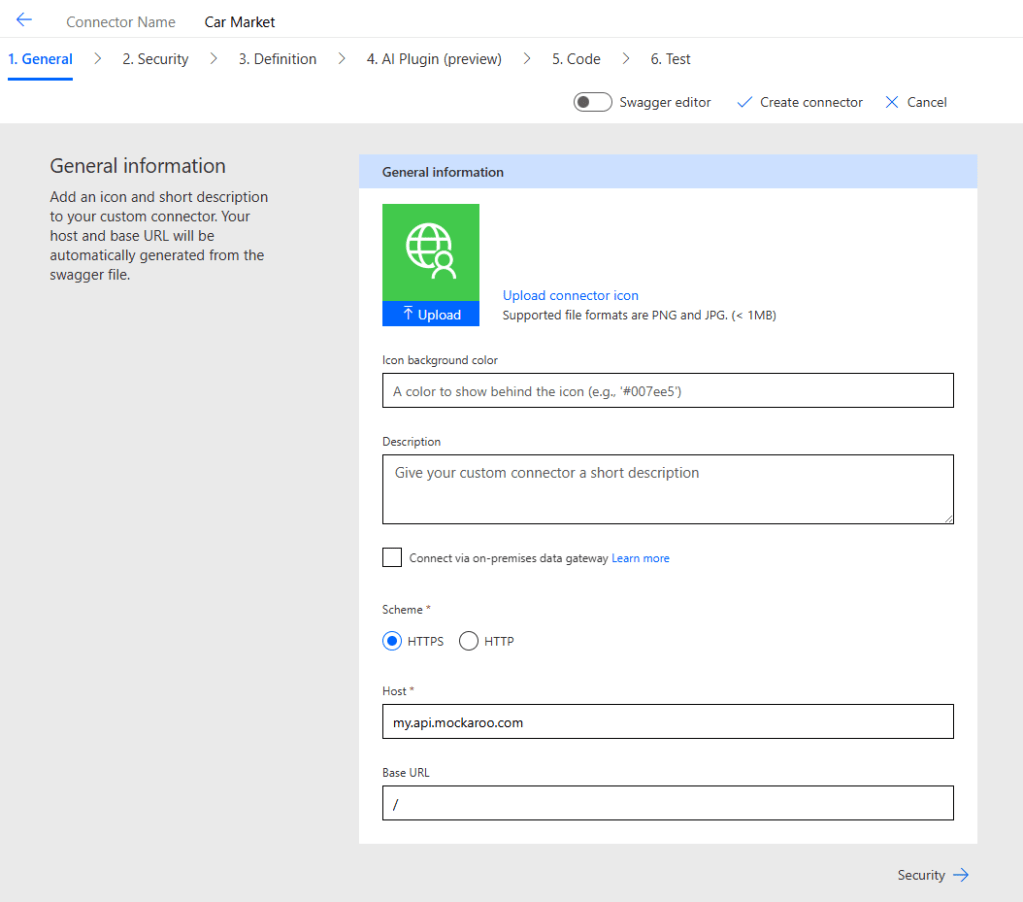 In the dialog that appears, give our custom connector a name. I’ve called mine Car Market.