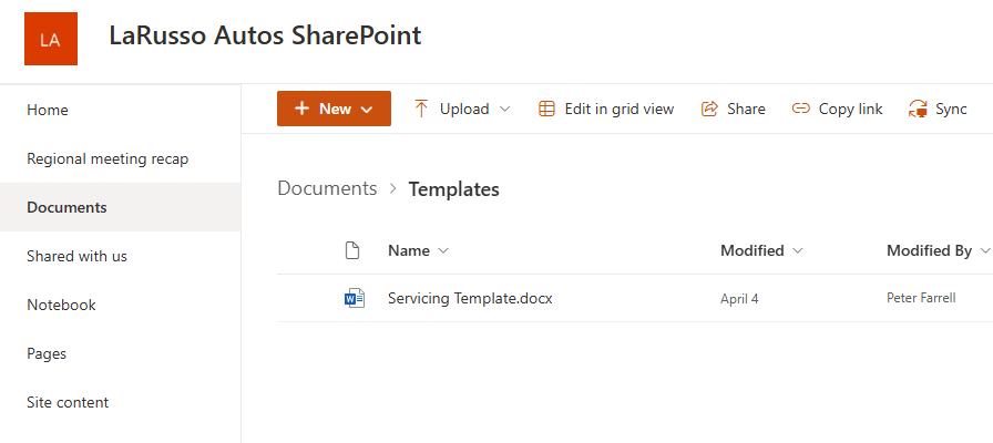 Now that our template is created, we need to store it in a location that is accessible to our Power Automate flows. I’ve chosen to store mine in a SharePoint library on my tenant: