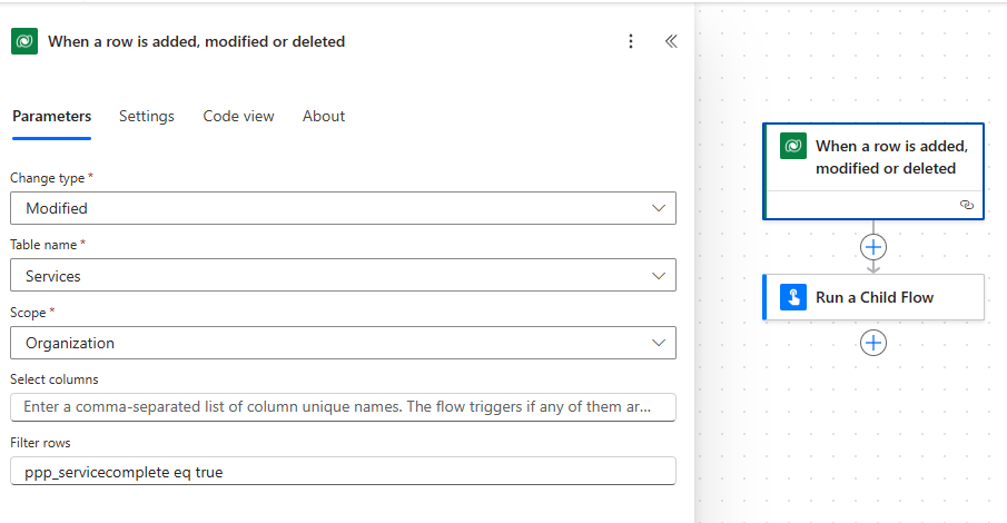 - Filter rows – ppp_servicecomplete eq true