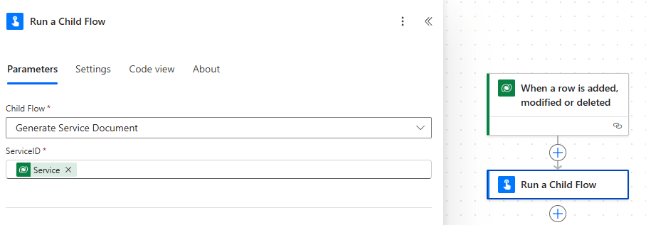 - Service ID – Service (reference to the row that triggered the flow).